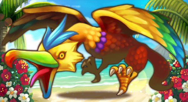 がさっ、と葉が擦れる音と同時に魔神が飛び出してきた。色鮮やかな羽を持つ鳥が、けたたましく鳴く。そして…一同に襲い掛かる!