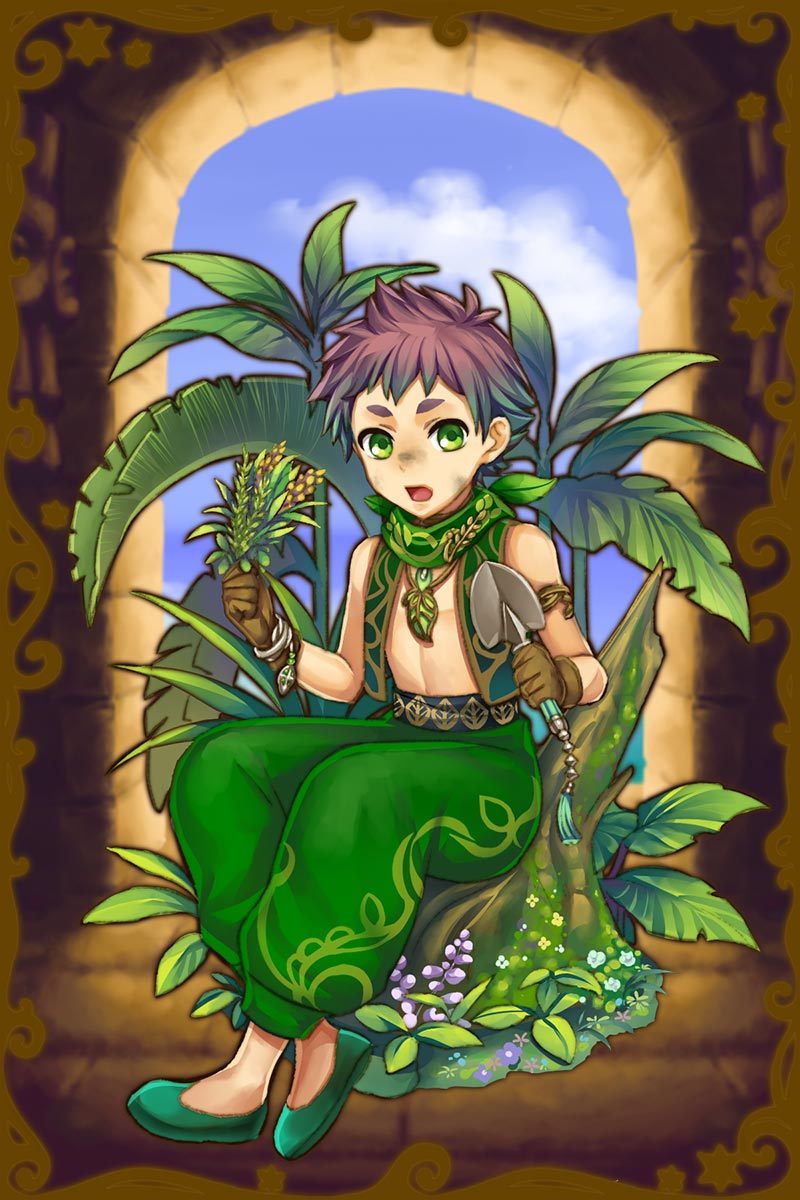 - 初期状態 :不滅を意味する植物の神。快活で素直。明るいムードメーカー的な性格で、小さなことにはこだわらない、懐の大きいタイプ。何かとお世話したり育てたりするのが好きで、植物や自然を愛している。