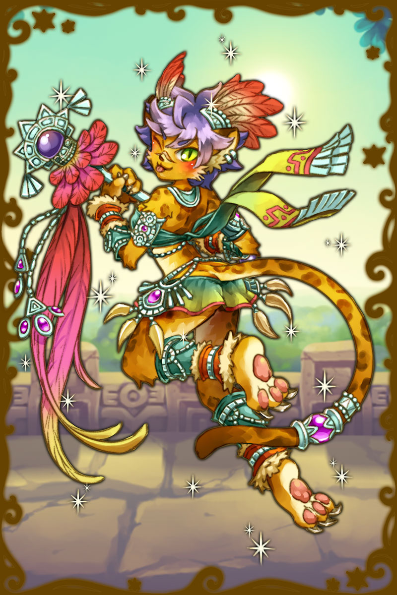 - 初期状態 :ケツァルコアトルと一緒に世界を創造したといわれるジャガーの神様。喜怒哀楽がハッキリした、無垢な子どものような性格。