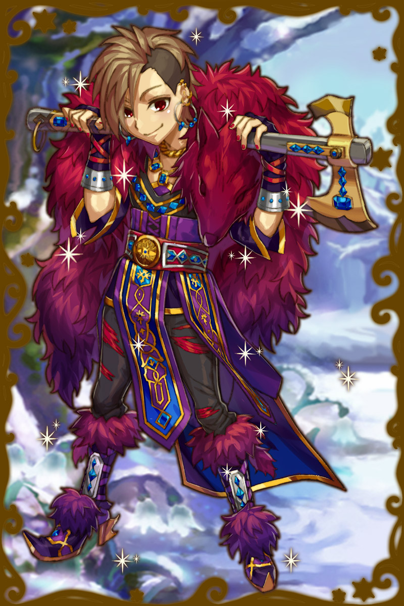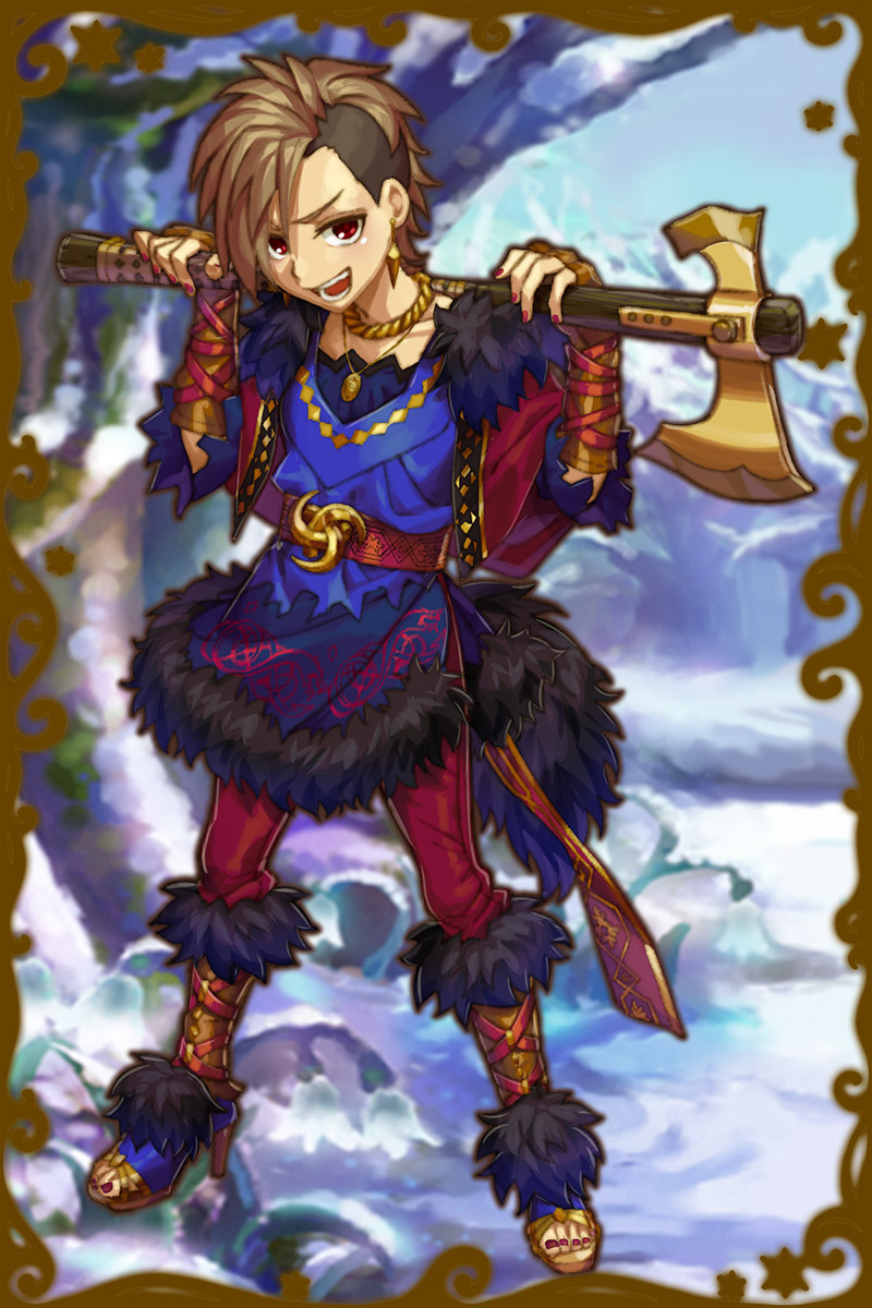 - こう見えて、オーディンのおっさんとは仲がいいんだぜ?まぁあのテンションの高さにはついていけねーけど、話は面白いし、なんだかんだ頼りになるからな!きみも、困ったことがあったらおっさんを頼りにしたらいいと思うぜ!亀の甲より年の功ってやつ!(親密度後半)