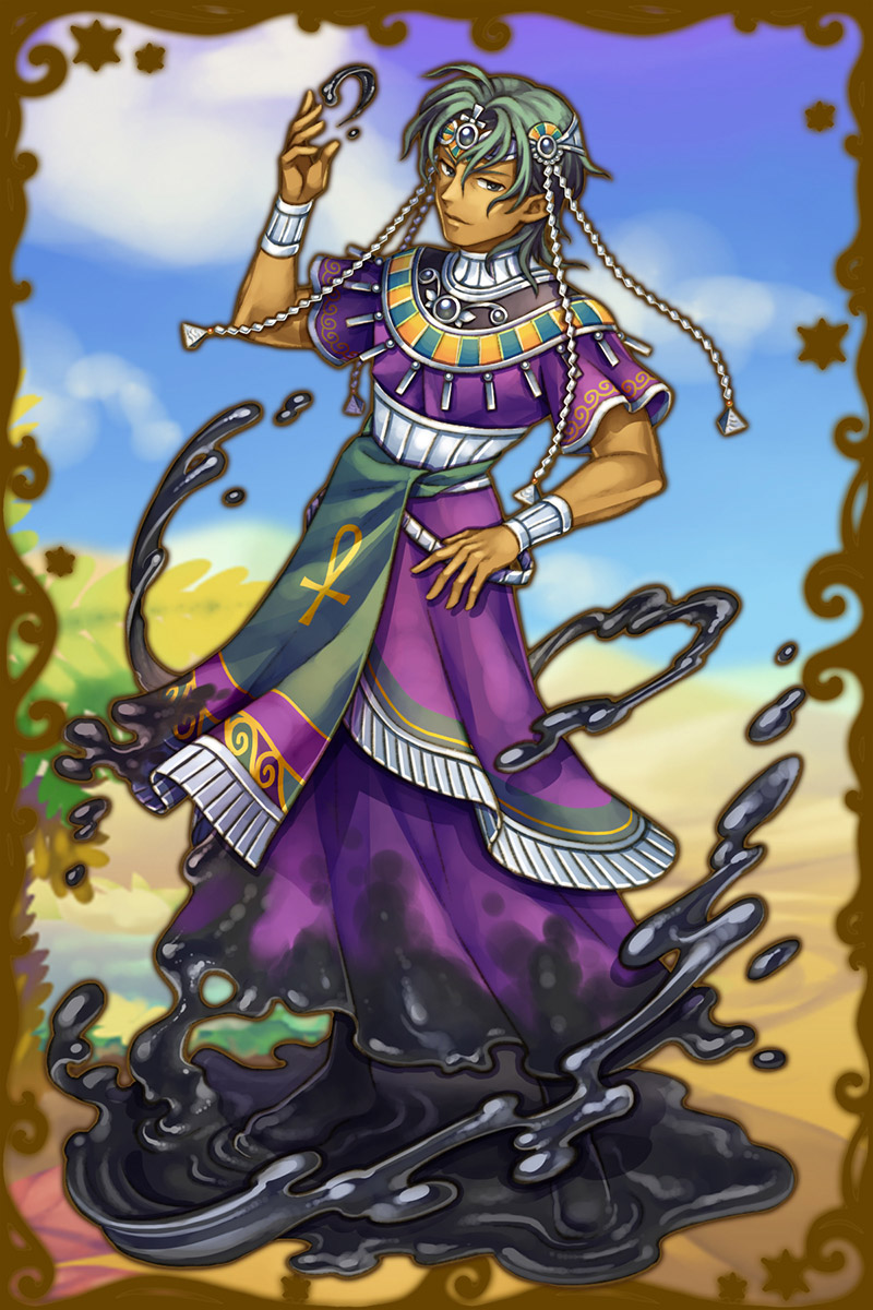 - ナイル川のことでハピに相談したいことがあったんだが、不在のようだね。よければ、君の意見を聞かせてもらってもいいかな。最近、ナイル川周辺の空気が澱んでいるような気がして…。…ほう、君も気付いていたか。やはり、魔神が潜んでいる可能性が高いな。(親密度前半)