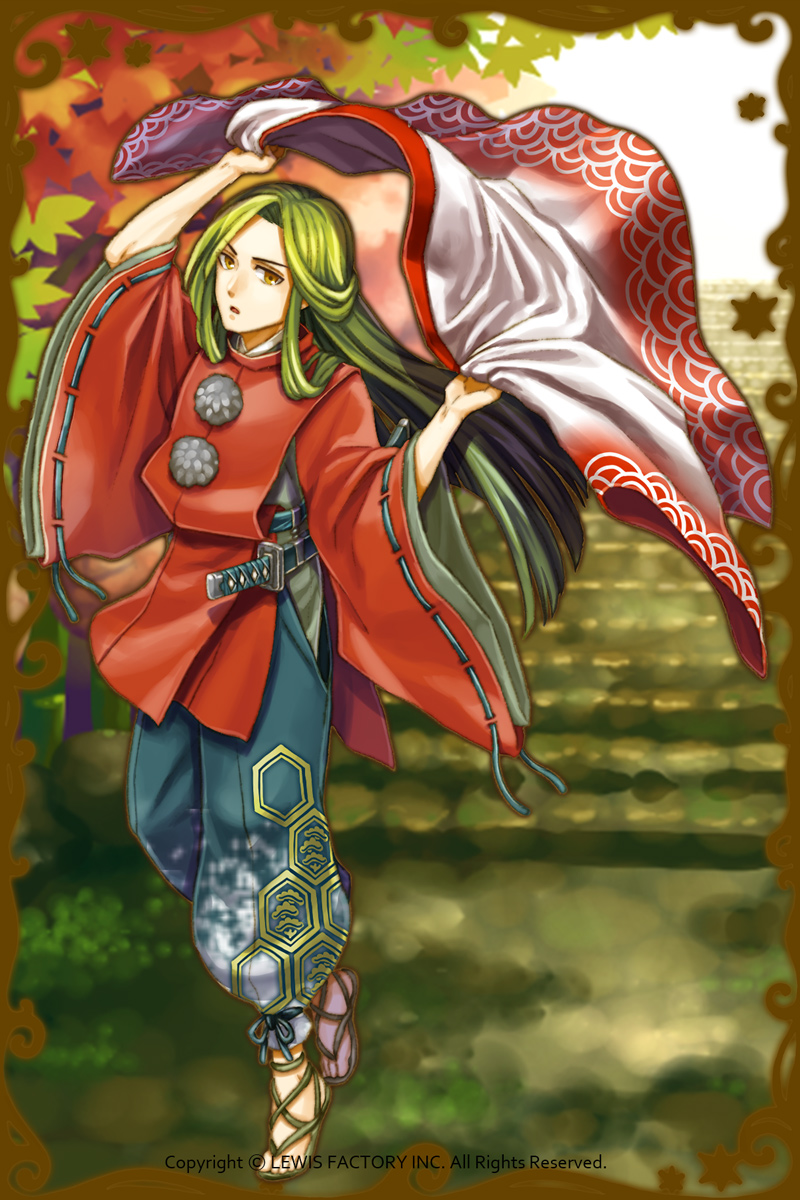 - 初期状態 :織物の神であり、着道楽。美しいものを見ると着飾らせたくなる性分の持ち主。衣装の華やかさから女性的な服装をすることが多いが、実は意外と喧嘩っ早く男らしい性格。