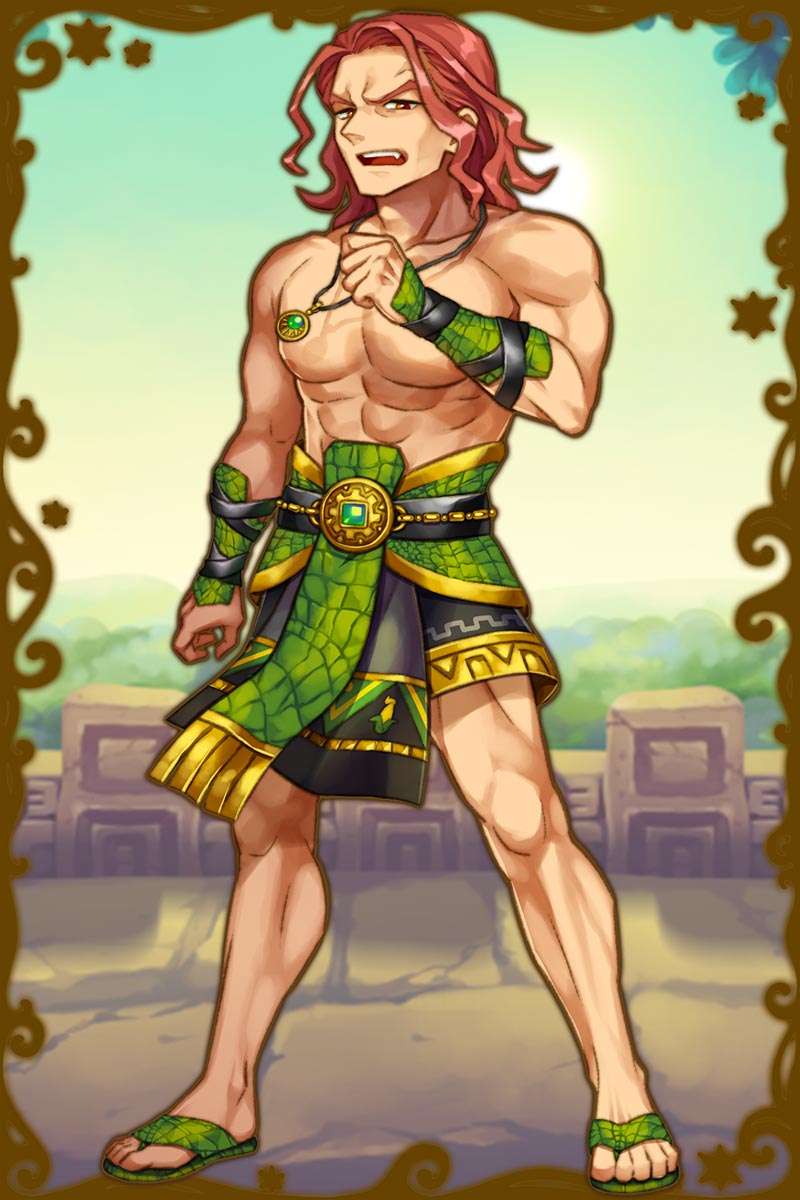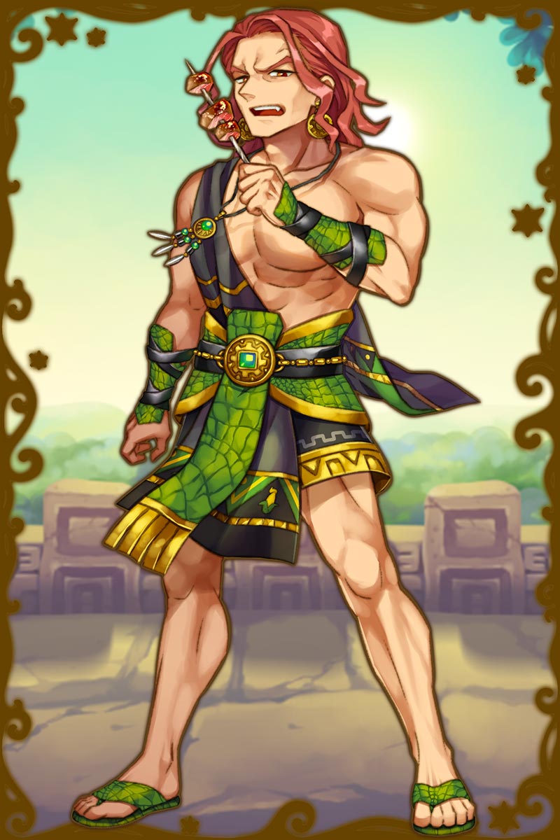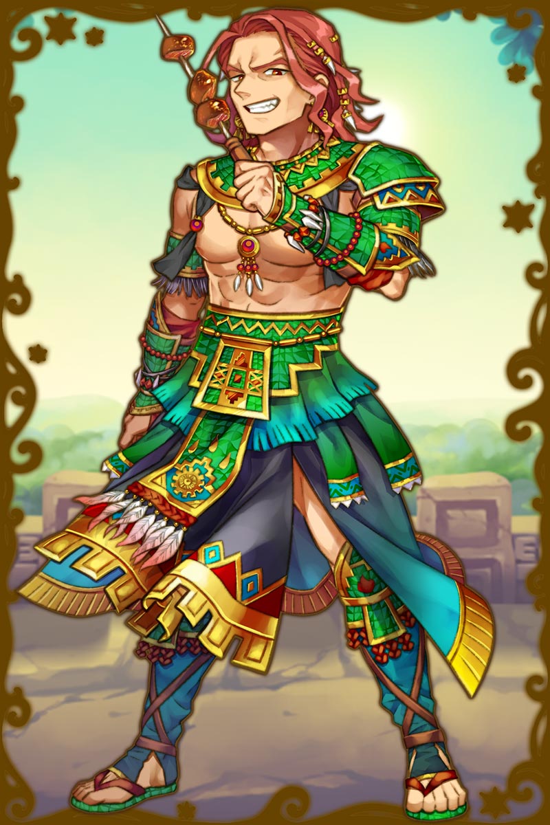 - パテカトルが用意するプルケ酒は質がいいんだよなぁ。さっすが、酒好きなだけあるぜ。んぁ?ハハッ、パテカトルから酒を奪ってんじゃねぇかって?よくわかってんじゃねぇか、その通りだよ。あんだけ美味そうな酒飲んでんだから、オレが貰って当然だろ。(親密度後半)
