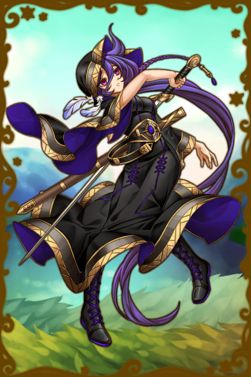 - 初期状態 :「戦いのカラス」の異名を持つ。戦場で死を予知する神であり、カラス姿になった彼女の叫び声は聞くものに恐怖を呼び起こす。巧みな剣技を扱い、何でも剣で解決しようとする。戦っているか、気に入った相手と一緒にいないとイライラしてしまう。気に入ったもの以外には興味がない。ヤンデレ。