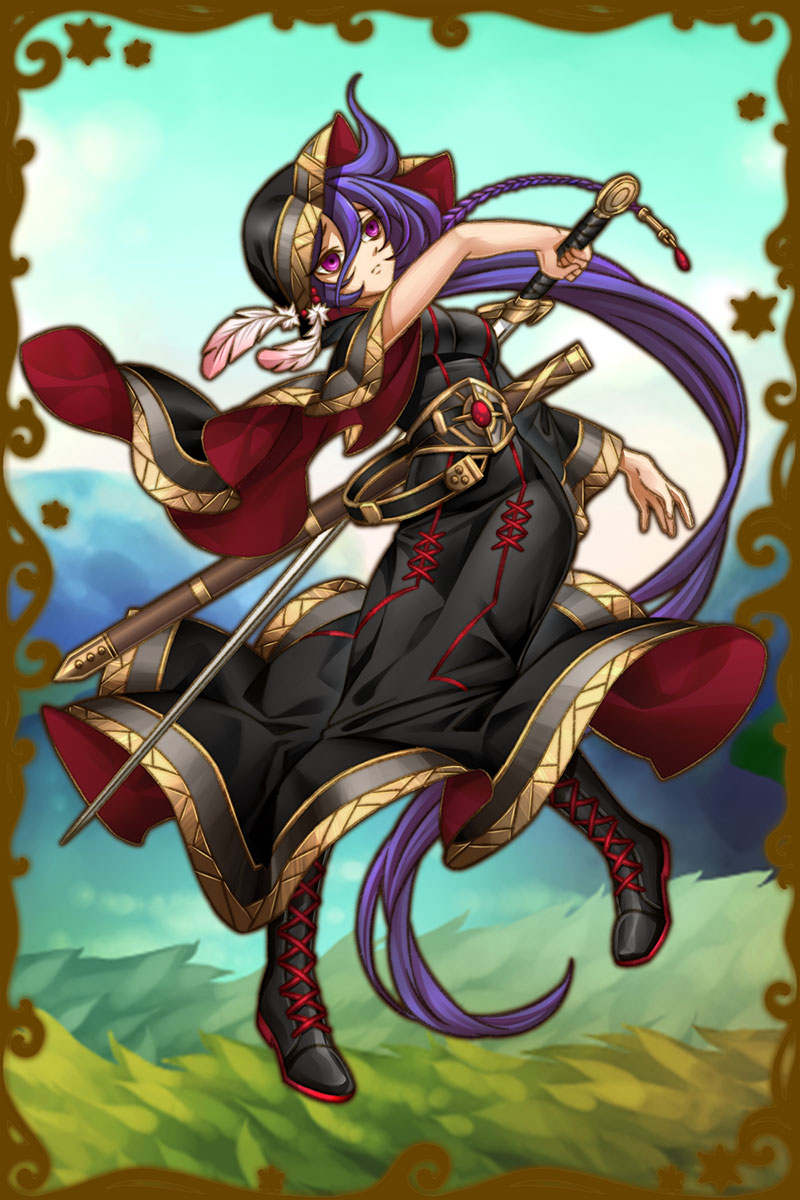 - 初期状態 :「戦いのカラス」の異名を持つ。戦場で死を予知する神であり、カラス姿になった彼女の叫び声は聞くものに恐怖を呼び起こす。巧みな剣技を扱い、何でも剣で解決しようとする。戦っているか、気に入った相手と一緒にいないとイライラしてしまう。気に入ったもの以外には興味がない。ヤンデレ。