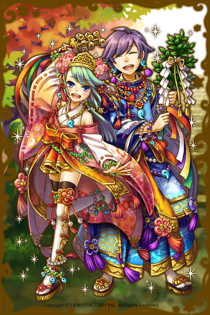 - 初期状態 :創設の神として名高く、2人が力を合わせれば強力な力が発揮され誰も逆らうものはいない。正月にあわせて仲良く、宮司と巫女の装いに身を包む。幸せそうな二人の姿を見ていると、何かよいことが起こりそうな予感がしてくる。