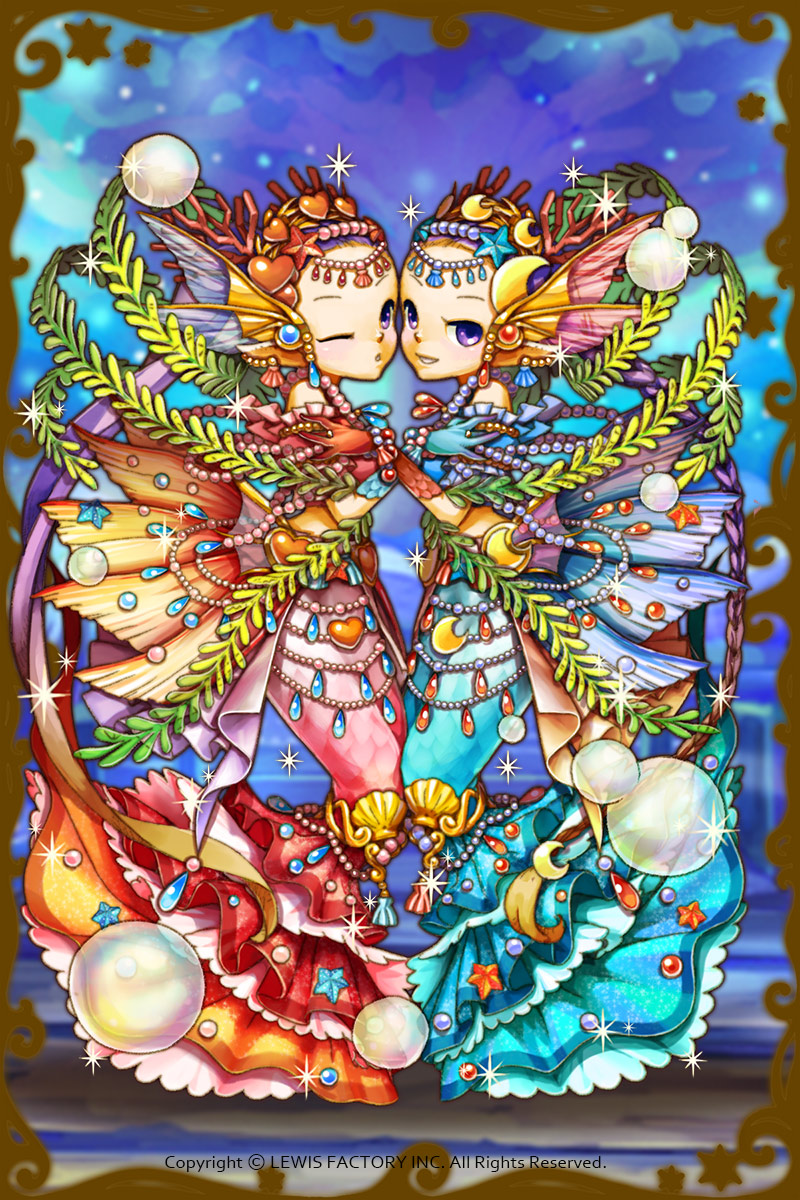 - 初期状態 :眉目秀麗な双子の姉妹。魔法や死の守護神であり、海の守護神でもあるフレイ・フレイアが、人魚姫に変身して神様たちを惑わせる。