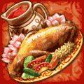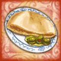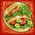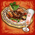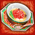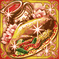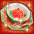 豪華ファッタ 荒れた砂漠に愛と潤いを! 祭りのときにしか作らないエジプト料理。スープで浸したパンの上にご飯と肉とトマトソースをかけたもの。親密度が800も上がります!