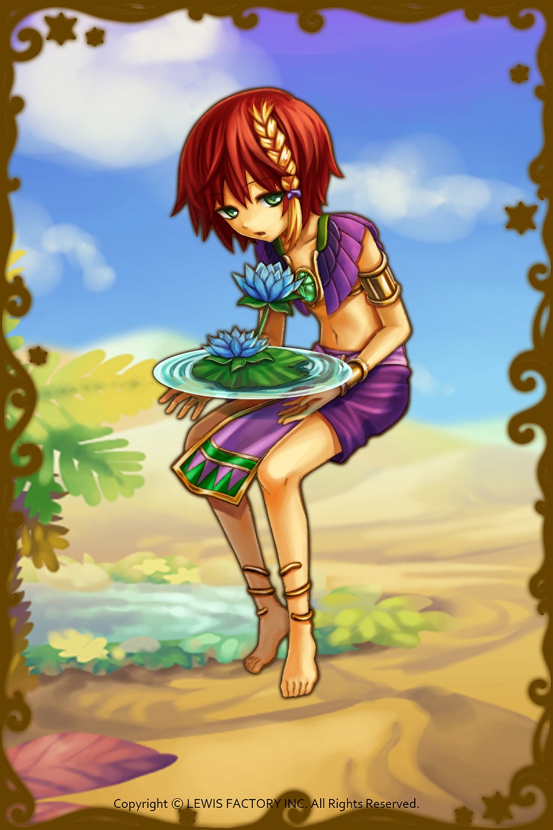- 初期状態 :エジプト神話の神で、ロータスこと睡蓮の花から生まれた。控えめで物静かな性格だが、こう見えて草花や小さな生き物に親しむアウトドア派。スカラベをこよなく愛している。