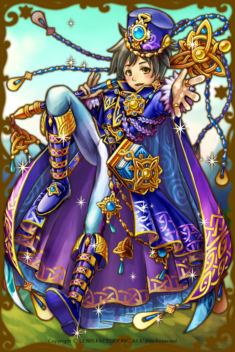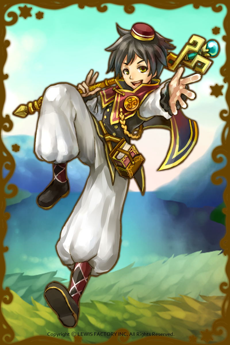 - 第一進化時:魔術師として知られる神で、色々な魔法道具を持っていることで有名。やんちゃで向こうみずな性格で、なんでもハッキリ言うタイプだがオイフェには素直になれない。進化石の力で封じられていた魔力を取り戻した。