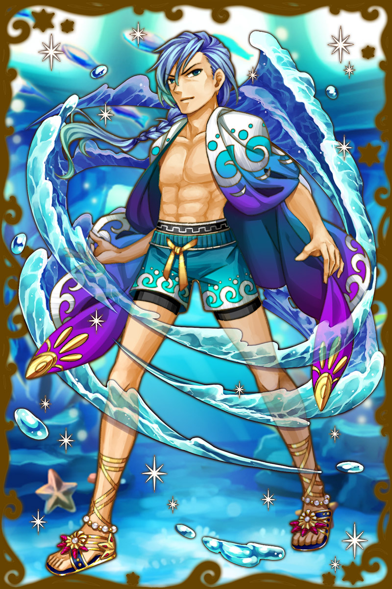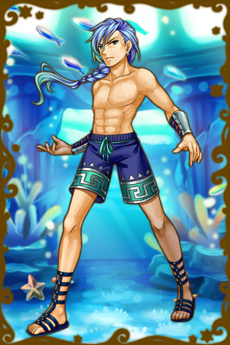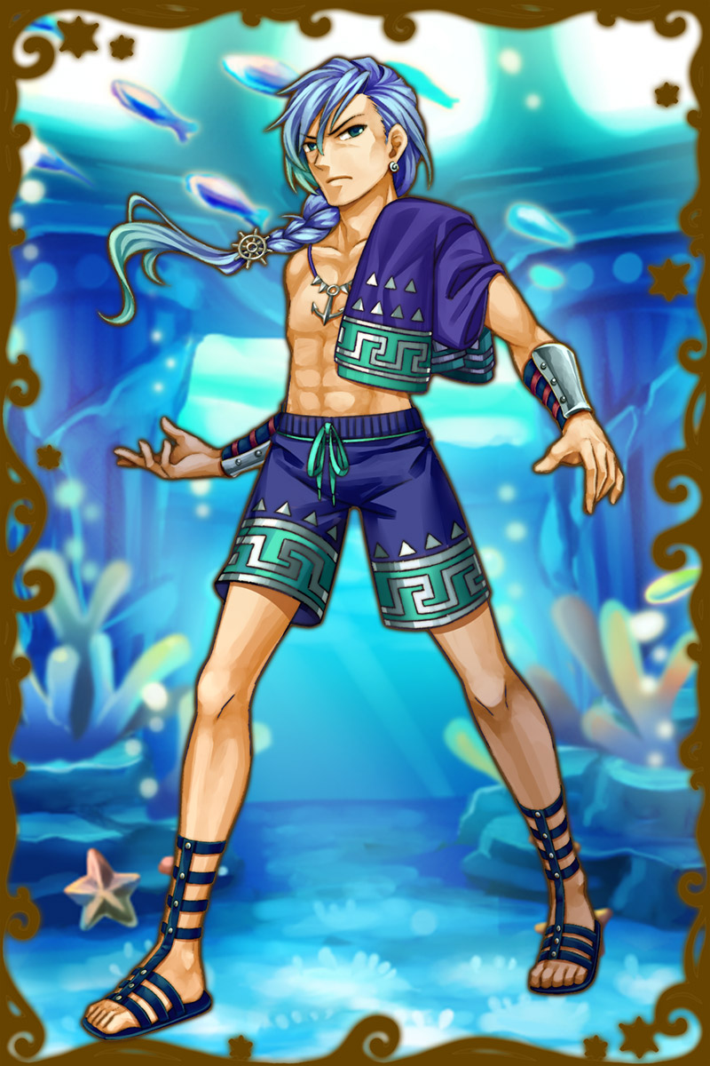 - 初期状態 :ギリシャ神話の海の神で、特に外洋の海流を司っている神。寡黙で判断力があり、他人にあまり頼らない。普通にしていても怒っているように見えるため、少々近寄りがたい雰囲気を持っている。ステュクスにねだられて一緒にバカンスをとり、水着を着て彼なりに楽しんでいる。