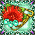 【スペルレベルMAX時、発動率25%・ダメージ1.5倍】 - 南の島の持つ、癒しの力を宿したブローチ。身につけるだけで、楽園に身を預けたような安心感を得られる。