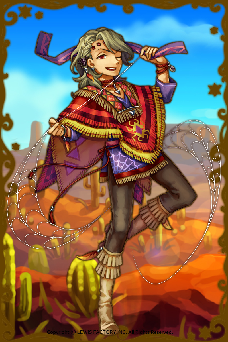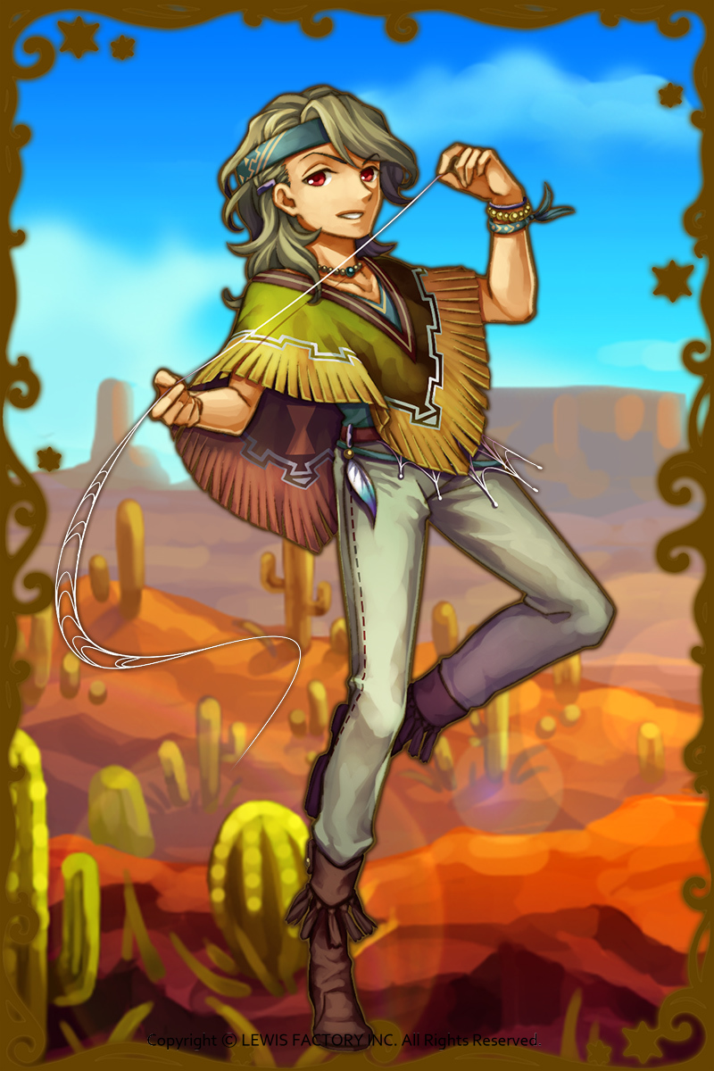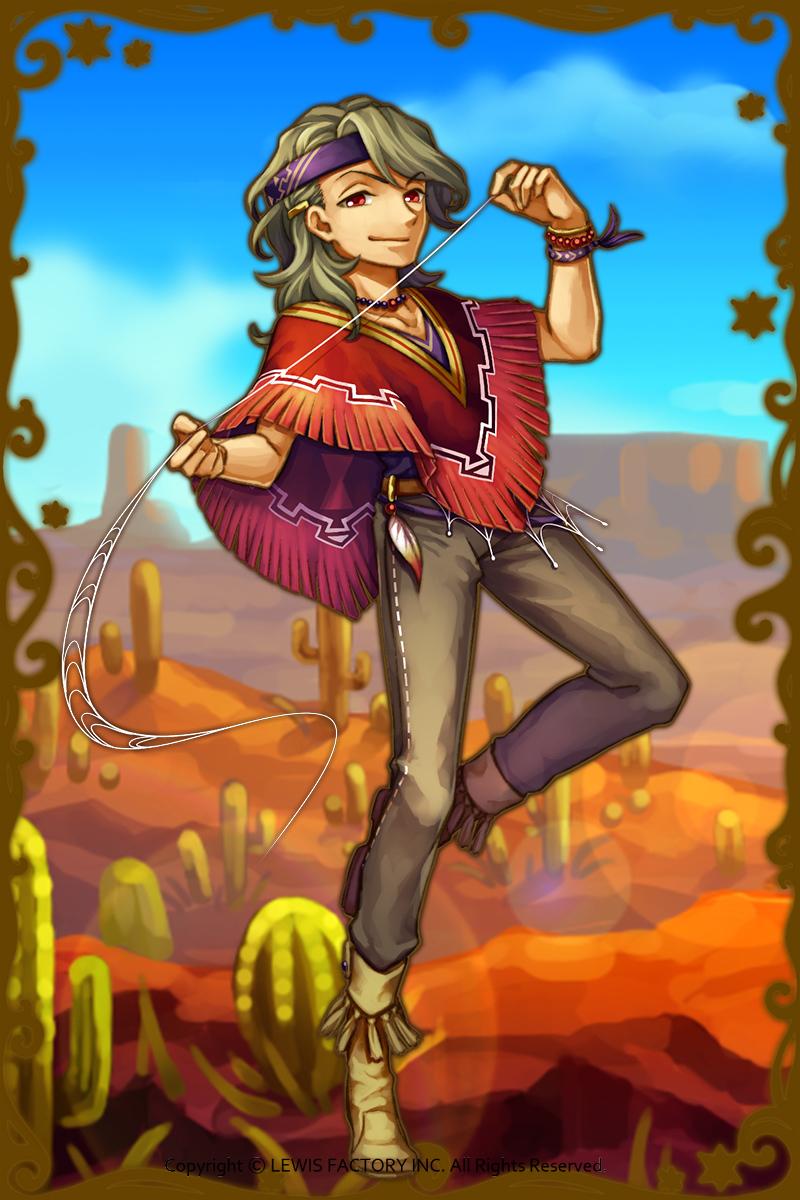 - 初期状態 :赤土地域きってのトリックスター。狡猾で女好きな色男で、蜘蛛の力を持っている。観察眼が鋭く、常に余裕を崩さない。コヨーテやレイヴンとつるんでいることも多く、よくからかっている。