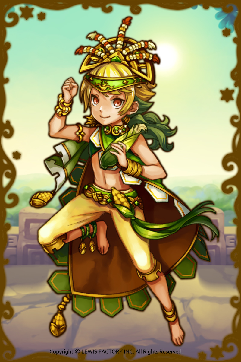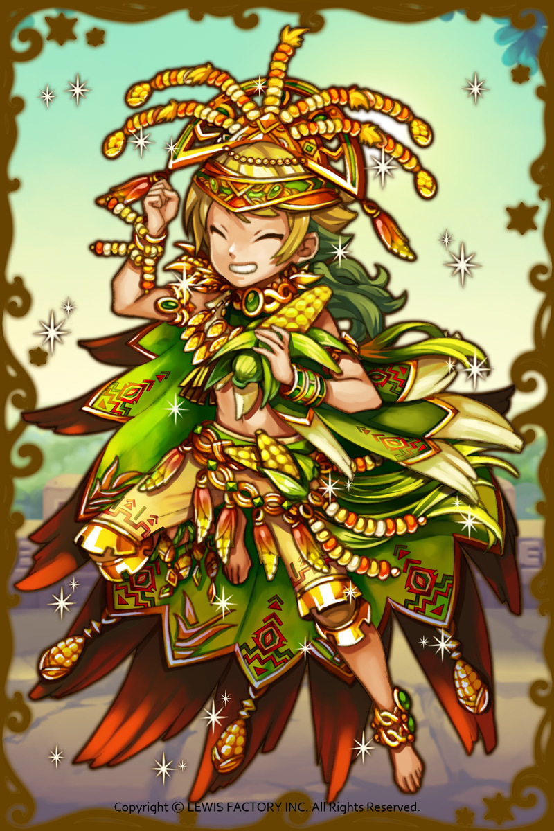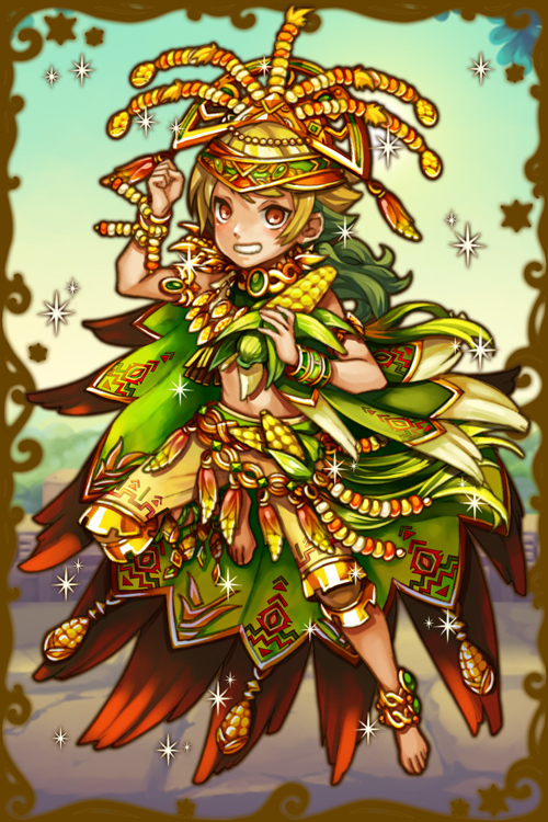 - 初期状態 :アステカ神話のトウモロコシの神。普段は元気いっぱいだが、魔神に力を奪われておなかが空いてしまっている様子。