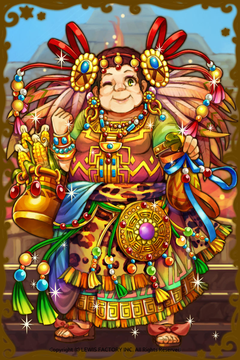 - 初期状態 :アステカの穀物と再生の神。人情家で世話焼き。トウモロコシを常に持っていて、分けてくれる。
