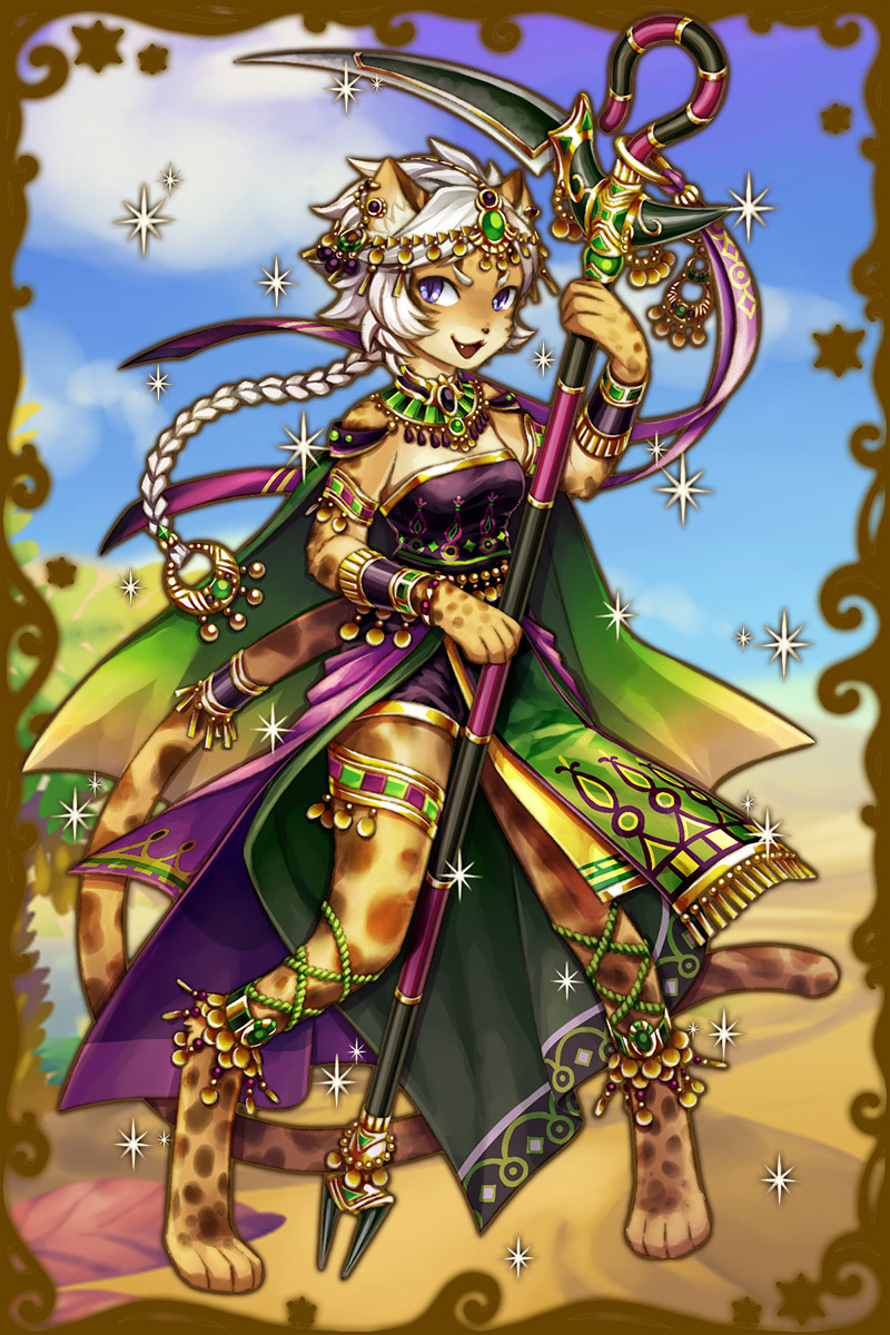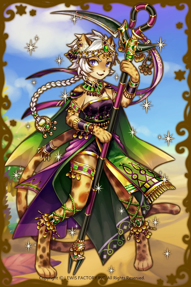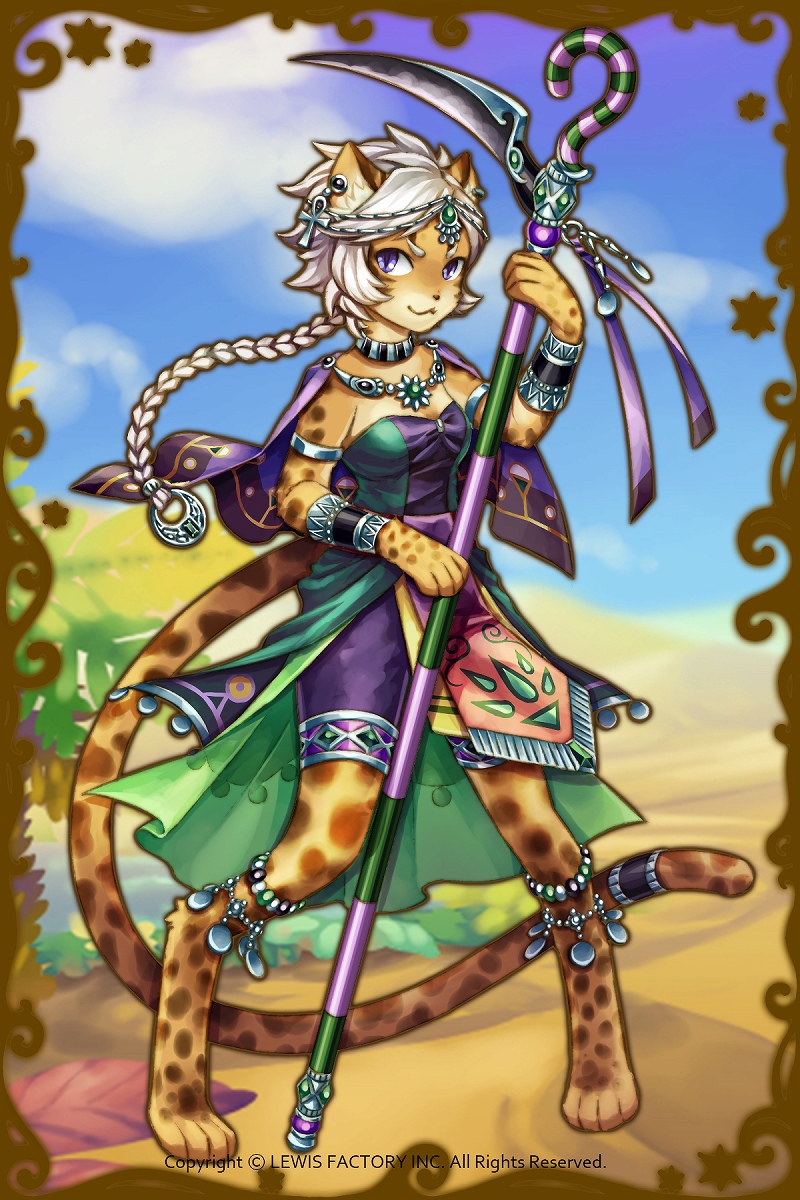 - 初期状態 :ヘビやサソリの毒を制する魔よけの力を持った神であり、セシャトの姉である神様。クールで戦い好きだが状況をよく見て誰かを守りながら戦うことが得意。魔神に捕まり、魔よけの力が弱まってしまっている。