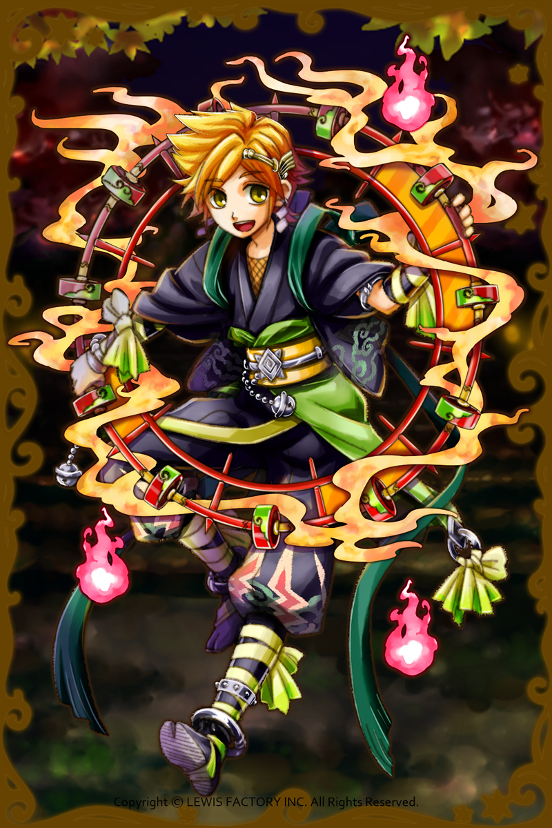 - 初期状態 :太鼓を用いて雷を起こすことのできる神様。明るいひょうきんな性格で、今回は肝試しのために特別な衣装を身に纏っている。脅かし役を極めるために日々奮闘している。