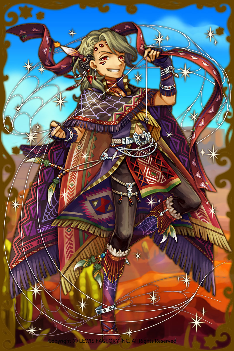 - 初期状態 :赤土地域きってのトリックスター。狡猾で女好きな色男で、蜘蛛の力を持っている。観察眼が鋭く、常に余裕を崩さない。コヨーテやレイヴンとつるんでいることも多く、よくからかっている。
