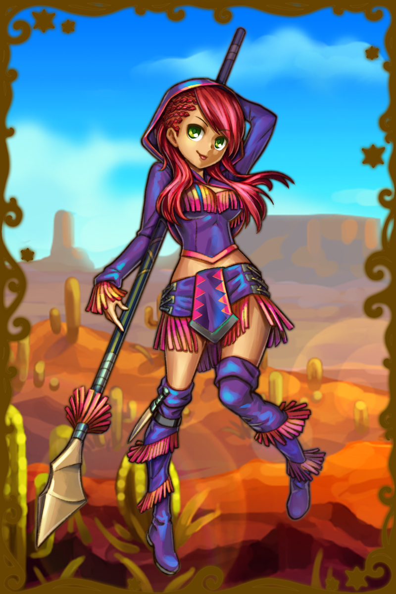 - え?この槍ー?戦う時に使う時もあるかな…ないかな?ないかもー。その辺にあるもの使って戦っちゃう!全然なんとかなっちゃうよー。うん、余裕余裕。テキトーでも勝てちゃうんだよね。アタシみたいなタイプって珍しいの?へー、そうなんだー。(親密度後半)