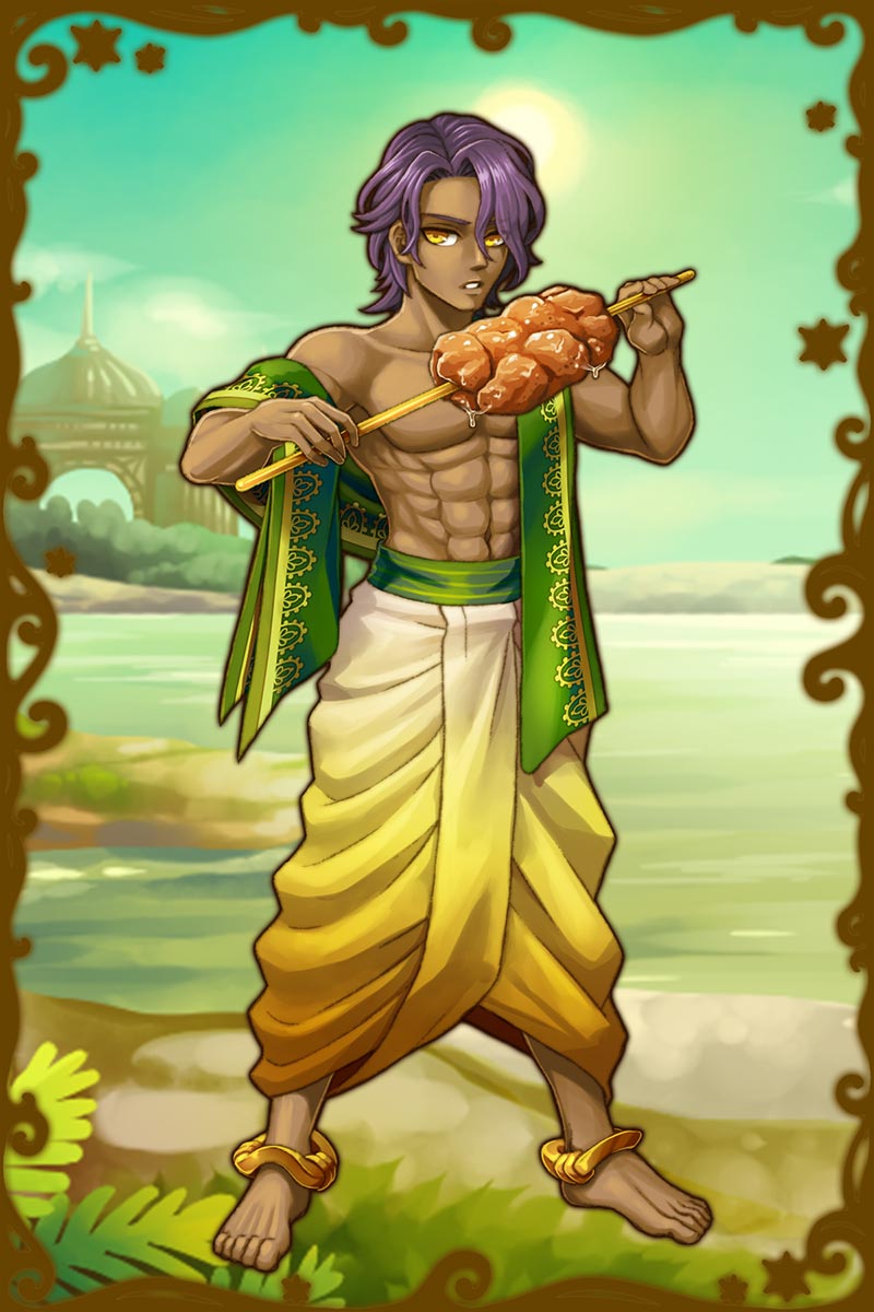 - ラーマ?あいつはすげぇヤツだよ…。あんな雰囲気で軽く見えるかも知んねぇが知識も力もあるし、何より人望が厚い。オレは好き嫌いが激しい方だけどよ、ラーマのことは尊敬してる。つーか、現に、前に助けてもらったことがあるんだよな。オレが腹減って動けなくなってたら、ラーマが飯をくれたんだから命の恩人だぜ。(親密度前半)