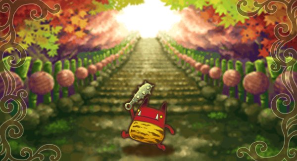 - (クリア時)何やらこの先に、怪しい気が漂っているように感じる。…あれは滝だろうか。