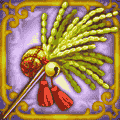 | 金稲のかんざし | 夏バテ姫を助けよう!! | 金色の稲穂をあしらったかんざし。豊穣への感謝が込められている。不思議と壊れない。 | 500 | 403 | 壊れない | ||